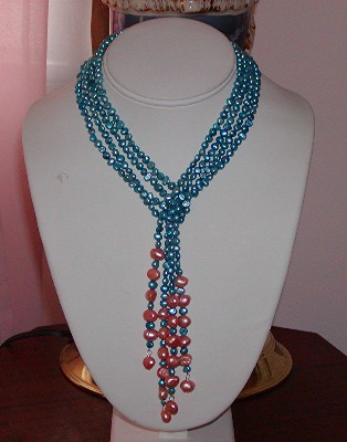 mother-of-pearl, freshwater pearls, citrine, pink jade and glass