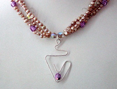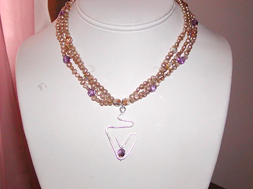 16" choker with violet quartz pendant. Three